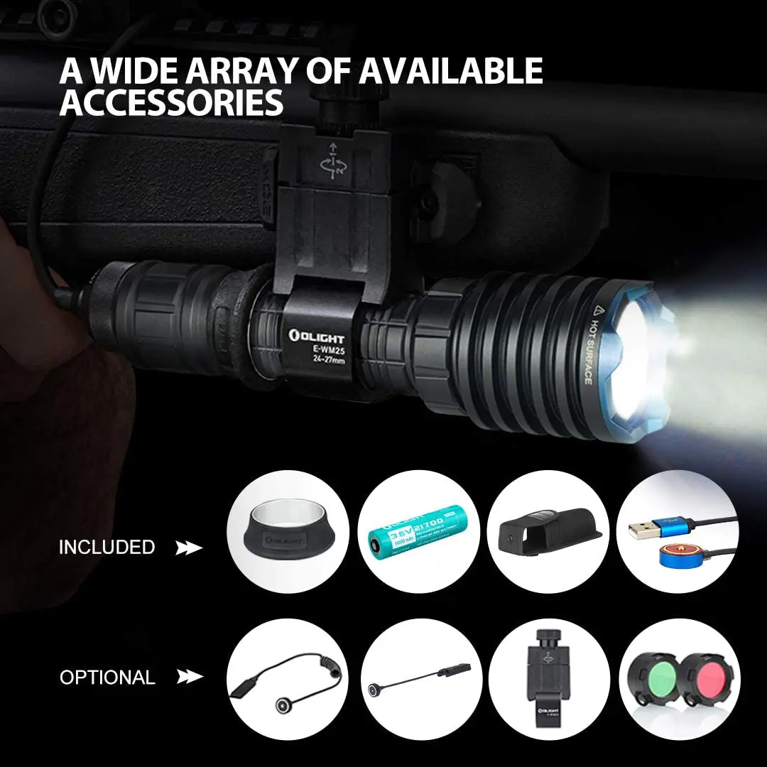 - 【What you will get】Warrior X Pro(Battery Included) x 1, Stainles Steel Pocket Clip x 1, MCC3 Magnetic Charging Cable x 1,Tactical Grip Ring x 1, Lanyard x 1, Usuer Manual x 1, Holster x 1. Olight's friendly customer service.